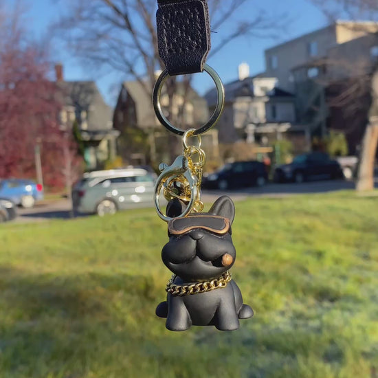 This modern keychain features a bulldog design wearing glasses, perfect for all ages. Keep your keys secure and add a touch of personality to your backpack or keys. Be unique with this stylish accessory and never lose track of your keys again.