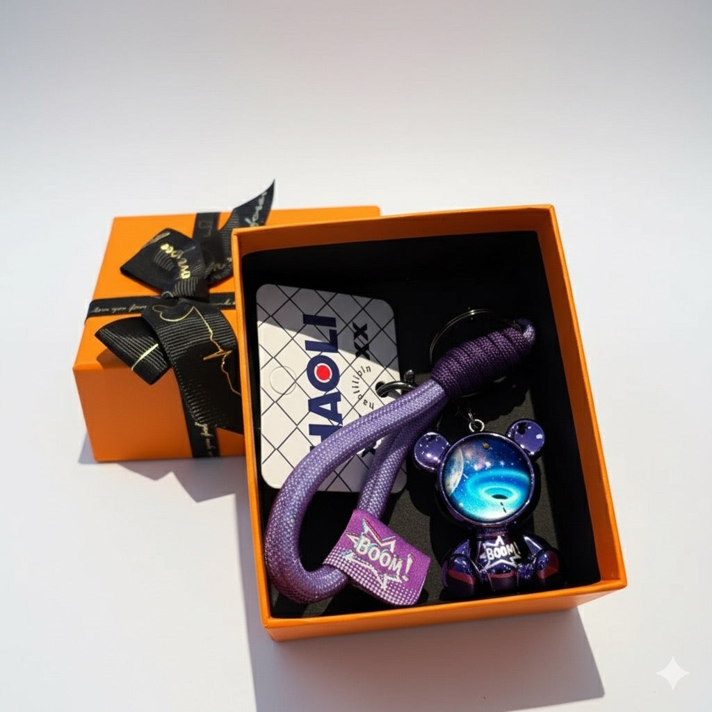 Featuring a modern and stylish design, the Keychain space bear purple is the perfect accessory for your car or backpack pack. The purple color adds a touch of personality to your belongings, while the keychain itself is both functional and stylish. Show off your love for space with this unique product.